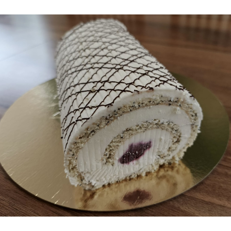 Rolada makowa na bitej śmietanie z konfiturą z czarnej przeczki