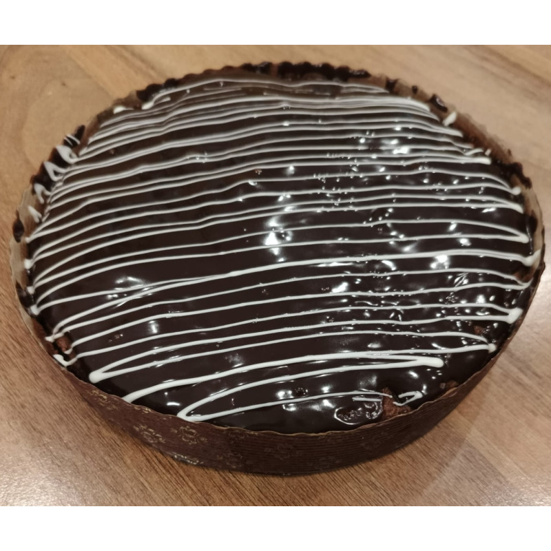 Puszyste ciasto czekoladowe z dodatkiem jabłka prażonego, wykończone polewą czekoladową
