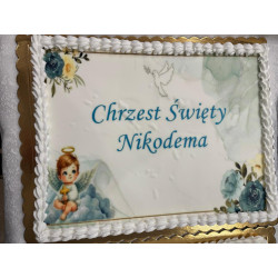 Na opłatku można umieścić dodatkowo krótki napis - prosimy o zaznaczenie tego we wiadomości - np. "8 urodziny Agusi "  czy   "Chrzest św. Nikodema"